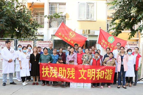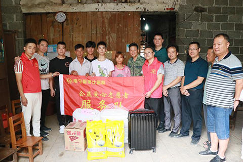 南宁脑博仕医院的领导与志愿者们为困难家庭发慰问品
