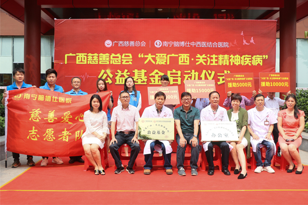 据了解,广西慈善总会、南宁脑博仕医院“大爱广西 关注精神疾病”公益基金成立以来,做为基金的指定医院,南宁脑博仕医院一直坚持热心公益,关爱精神心理疾病患者,以及帮扶众多的困难群众,得到社会各届的好评与认可。点滴爱心,汇聚成河,在这里也呼吁社会更多的爱心人士,发扬中华民族的优良传统,参与到帮扶困难精神、神经疾病患者的慈善事业中来,并带动更多的医疗机构和社会公益组织与我们携手同行,让他们得到更好的治疗与康复。