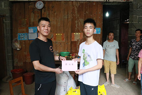 吃过简单的午餐后,得知一部分困难家庭离村委会比较远,交通不便,梁秘书长以及南宁脑博仕医院志愿者服务队的爱心志愿者们一行,特地驱车上门送上爱心慰问品,并询问他们的身体状况及困难之处,鼓励他们保持良好心态,积极向上,乐观的面对生活。在来到都讲屯潘克艳家时,得知她的大儿子已经考上天津大学却无力承担其学费时,在送上米、面、油,棉被,行李箱等爱心慰问品之后,还送上了3000元助学金,鼓励他努力学习,积极进取,争取拿上国家奖学金,减轻家庭负担,为改善家庭的情况,也为改变自己的人生而拼搏奋斗。
