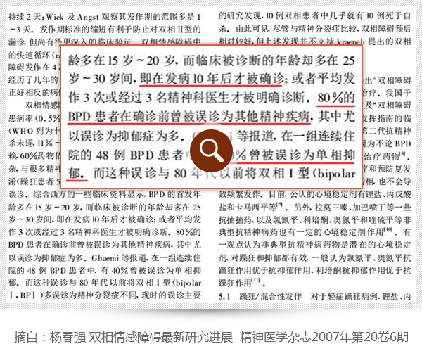 非专科医院医师经验、医术不精;患者在抑郁期求医是双相误诊的重要因素。